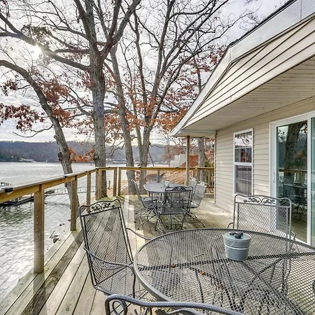 A Fish And Boat On Lake Of The Ozarks Waterfront Home tem cozinha equipada equipada com comodidades, tais como refrigerador, forno e utensílios de cozinha para autosserviço.